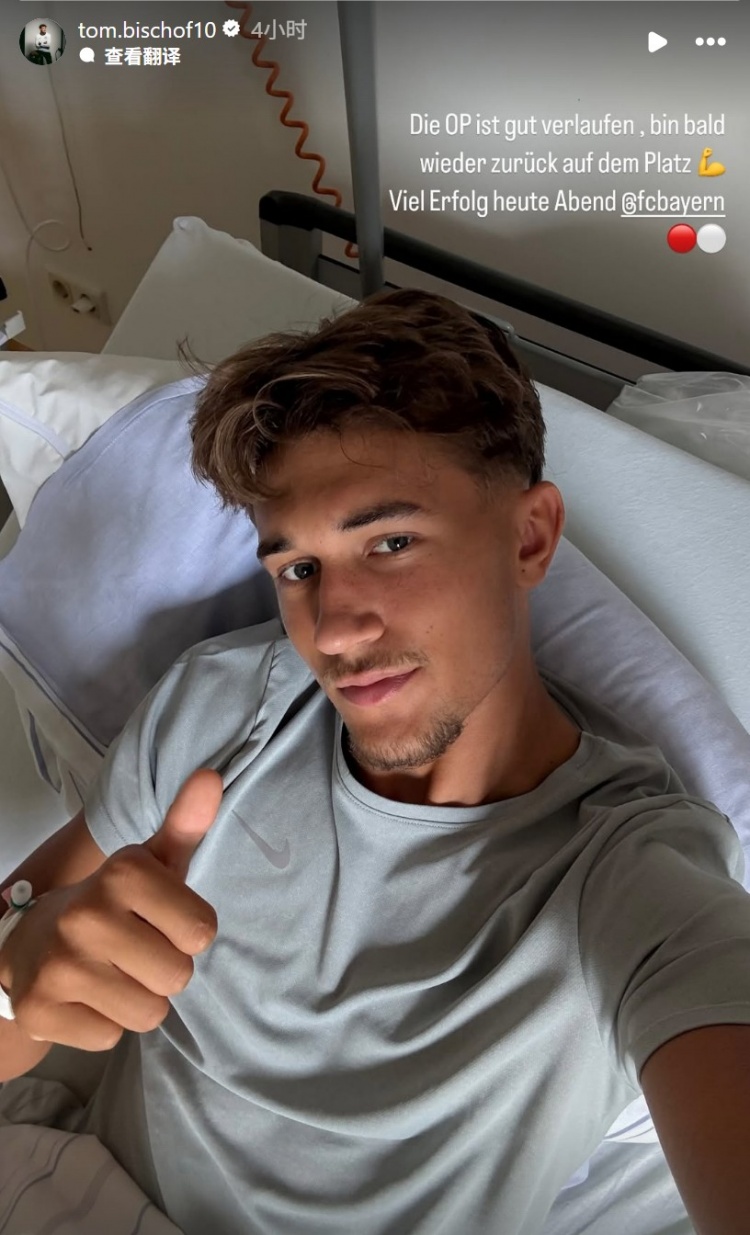 比朔夫在社媒配文写谈:“手术终点告成,我会很快追思。祝球队今天的比赛好运!”