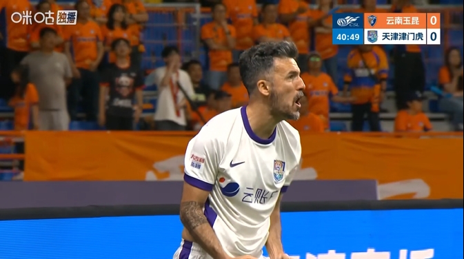 津门虎客场应战 领跑 玉昆!基莱斯单刀赴会面对守门员垫射破门