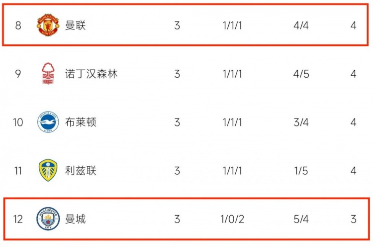 此前,曼联一度因开局灾祸战绩成为球迷的笑料,而曼城3轮事后比曼联还少1分。