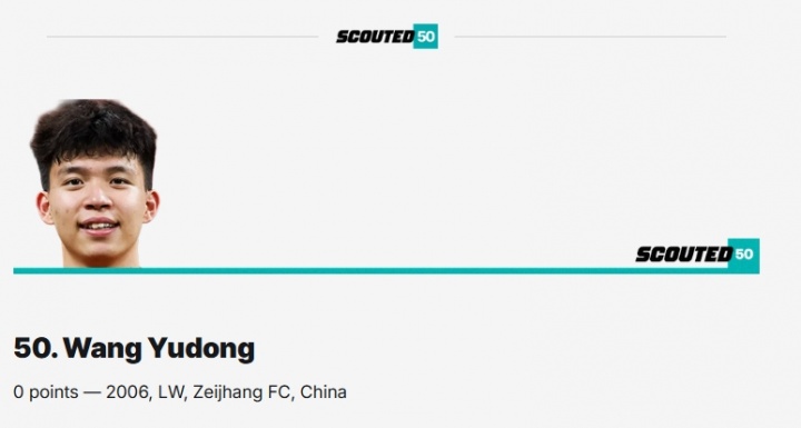 10月11日讯 海外专注于年青球员的杂志《SCOUTED》近日评比出了大家值得留意的年青球员TOP50,其中18岁的王钰栋入围名单,排行第50。