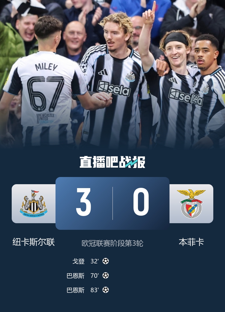 10月22日讯 欧冠联赛阶段第3轮首个比赛日扫尾,3场英超球队(阿森纳、曼城、纽卡)的欧冠比赛王人告成拿下告捷且告成零封敌手。