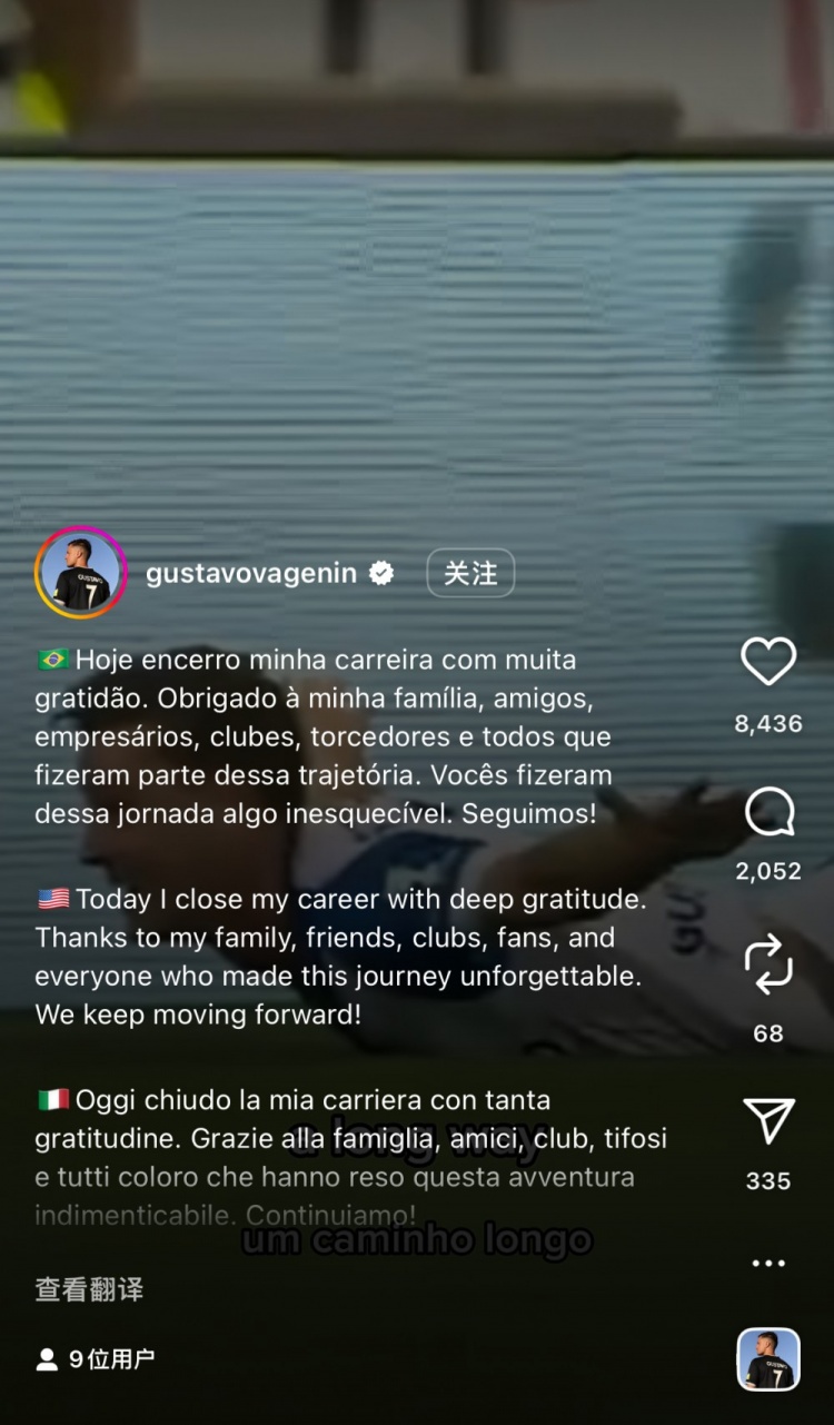 古斯塔沃写说念:“今天,我满怀感德截至我方的功绩生活。感谢我的家东说念主、一又友、俱乐部以及统共守旧我的东说念主们。不息前行!”