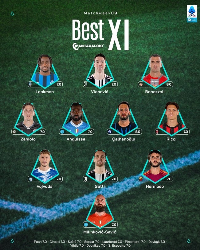 前卫:卢克曼(亚特兰大)、弗拉霍维奇(尤文)、博纳佐利(克雷莫内塞)