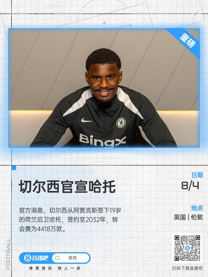 官方音讯,切尔西从阿贾克斯签下19岁的荷兰后卫哈托,签约至2032年。