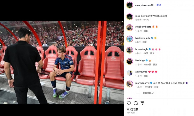 预订太子?阿森纳15岁中场说念曼社媒晒同塔帅对视照:多棒的一天!