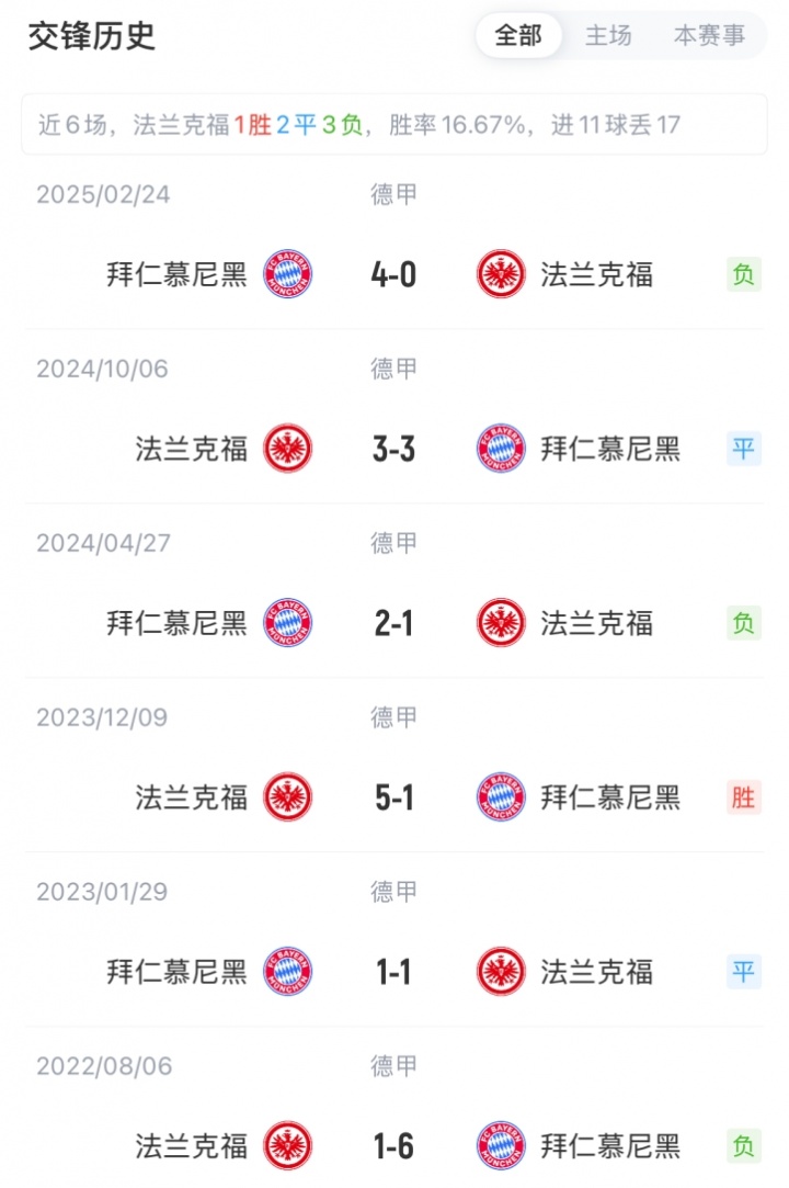 10月4日讯 德甲第6轮,法兰克福主场迎战拜仁比赛行将打响。赛前首发出炉。