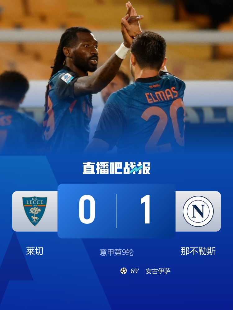 安古伊萨制胜,瓦尼亚扑点,那不勒斯客场1-0慑服莱切获取两连胜。