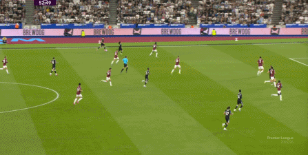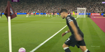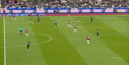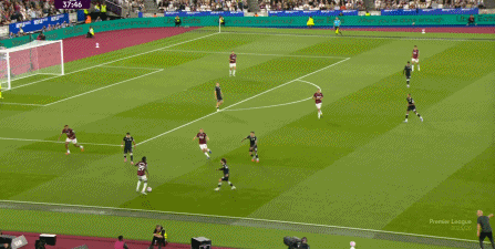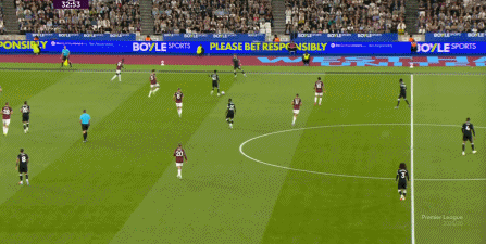 在此之后,西汉姆联的心气也遭到了打击,毕竟半场不到就丢掉三球,让我方的开分也莫得了任何道理,是以在上半场末段,他们只打出了一次并不告成的右路传中: