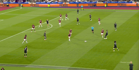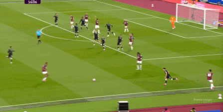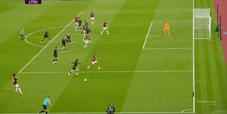 而在他进入肋部,送出传中的时候,切尔西在中路的悉数防护球员全部退到了小禁区内,让外围和后点漏了个精光,这才是西汉姆联纠合起脚的原因: