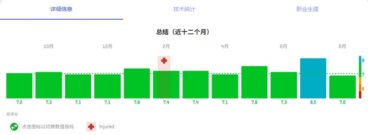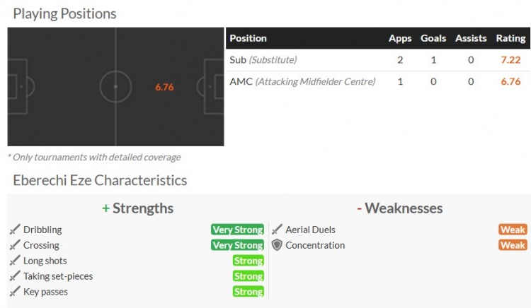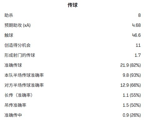 稀奇是近两个赛季,他的引导官属性越发的权贵。上赛季,埃泽在31次出战中孝顺了场均1.7次要津传球(球队排行1、联赛排行7,下同)、11次创造绝佳机会(排行2、7)、场均1.8次过东谈主(排行1、2)、场均被侵扰1.5次(排行1、5)等要津数据,8个进球及8个助攻的阐发,亦然饱和出色了。再加上“倒数第二传”及“盘算攻势”,水晶宫有58.8%的进球跟埃泽是邃密的议论了,由此可见其价值。