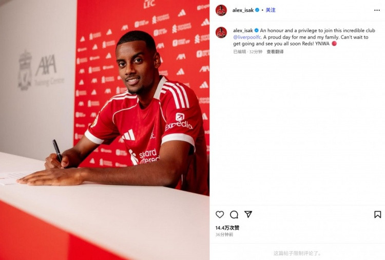 利物浦还是官宣引进纽卡中锋伊萨克,后者也秉承了俱乐部官网的问答采访。