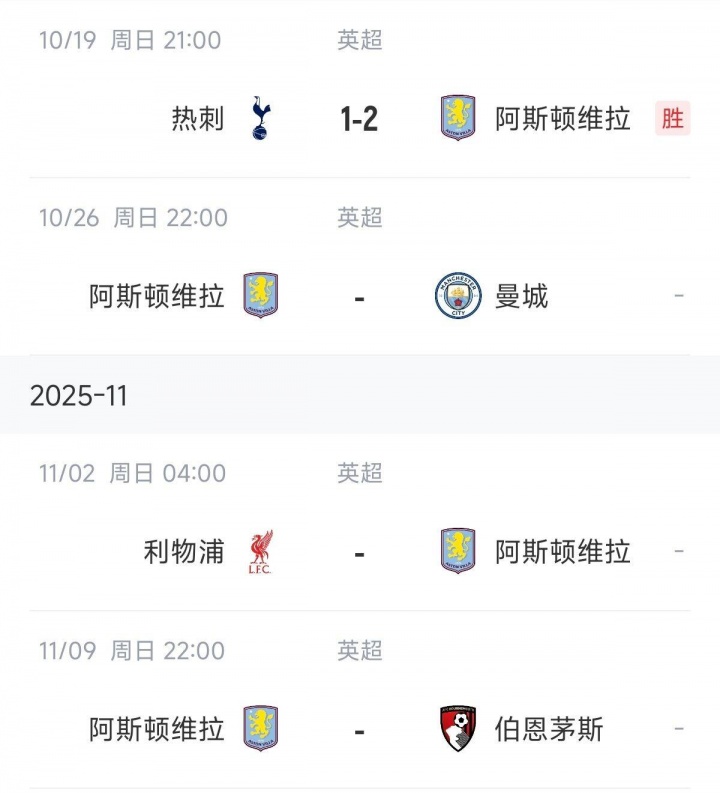 二三四名轮替上!维拉豪取五连胜现象炸裂,行将连战曼城赤军樱桃