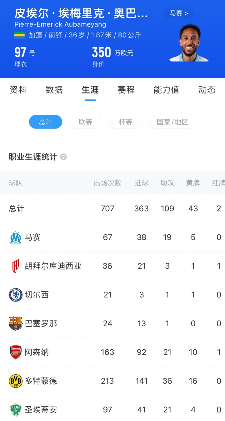 11月26日讯 欧冠联赛阶段第5轮,马赛2-1逆转纽卡,其中36岁的奥巴梅扬4分钟打入2球主导逆转,本赛季5轮欧冠孝顺3球3助。