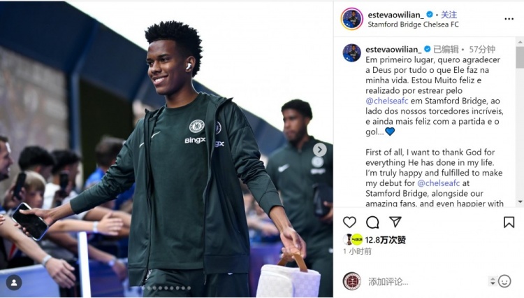 埃斯特旺社媒写谈:“最初我要感谢天主在我性射中所作念的一切。大略在斯坦福桥与令东谈主惊艳的球迷们全部完成我的首秀,我极度欢娱和得志,比赛效用和进球令我愈加昂然。”