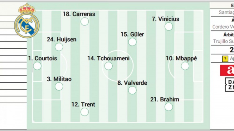 阿斯展望皇马揭幕战首发:巴尔韦德追想 迪亚斯、居勒尔先发