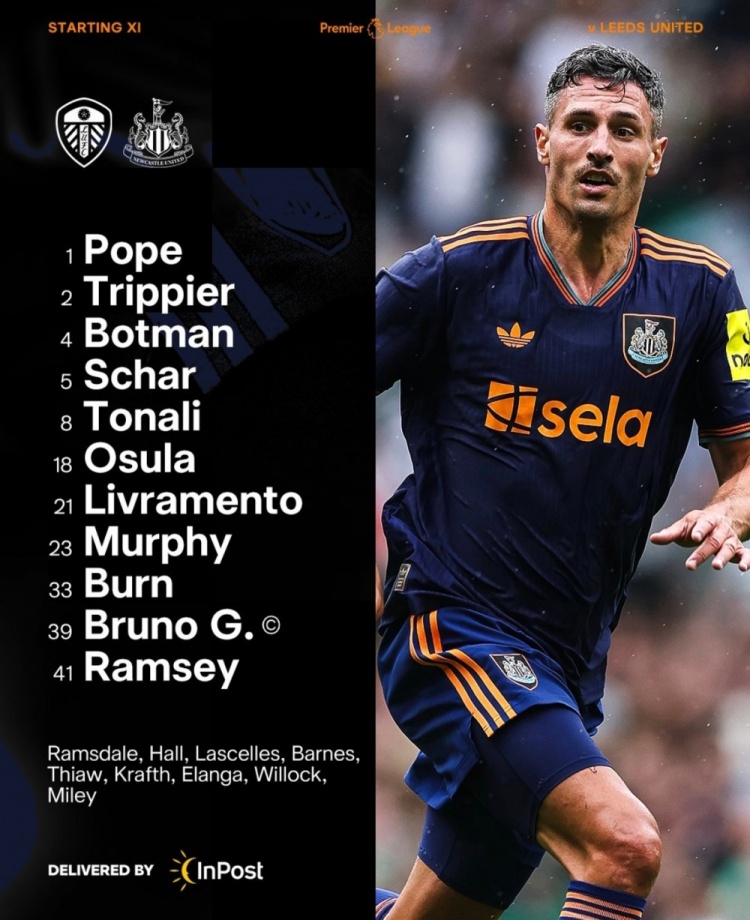 8月30日讯 纽卡将在本轮英超迎战利兹联,球队公布了本场首发,伊萨克赓续缺席。