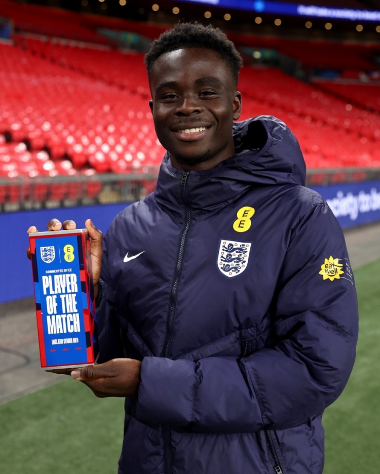 萨卡此役为英格兰队首发出战,打进一球,英格兰队官方告示,他当选本场比赛队内最好球员。