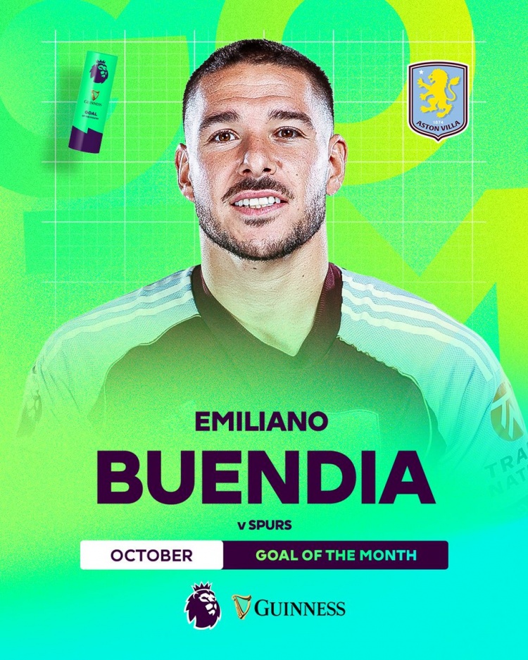 英超第8轮比赛,布恩迪亚第77分钟内切后禁区线处劲射,攻入制胜进球,匡助维拉客场2-1打败热刺,英超官方通知,这记劲射当选10月最好进球。