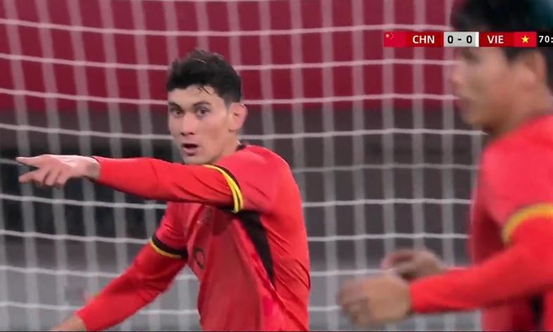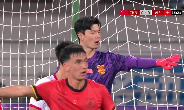 第44分钟,越南队打穿中国队防地,阮安闲的射门被霍深坪勇猛扑出!这段技艺中国队门前弓影浮杯!