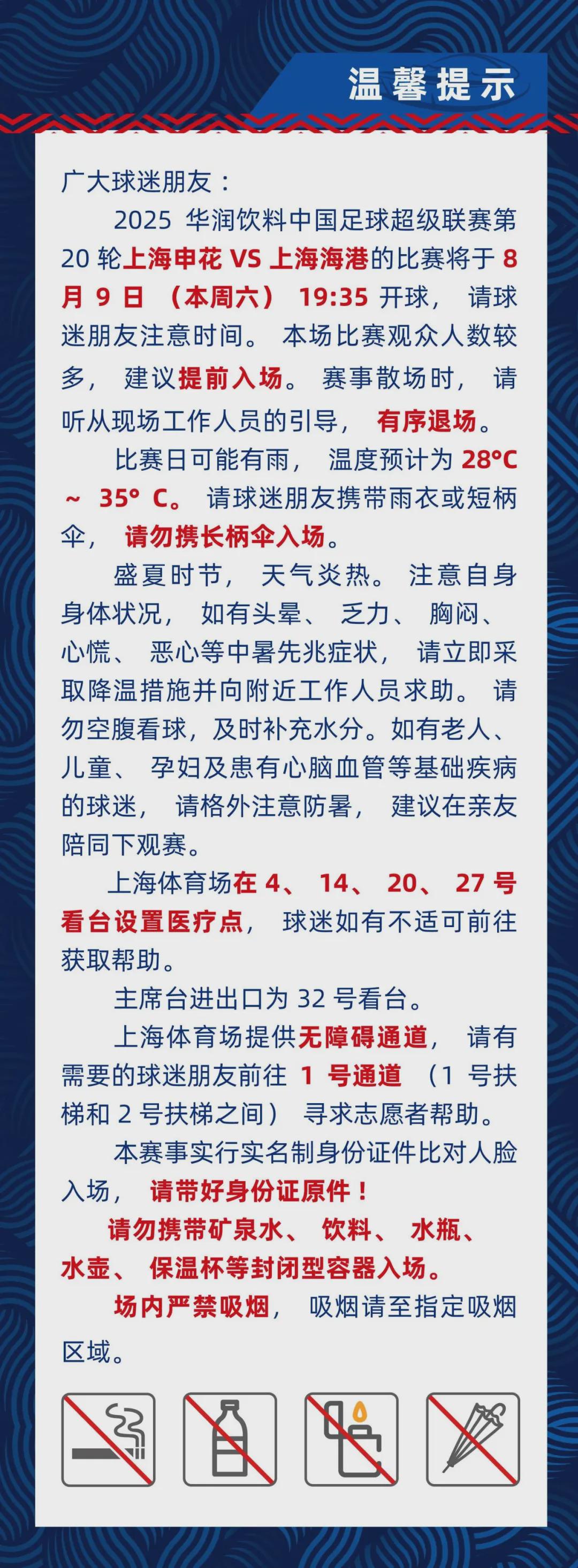 市体育局先容,中超联赛第二十轮上海申花&上海海港的比赛将于8月9日(本周六)开球,快收好这份不雅赛指南↓