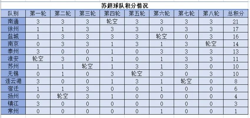 “数”看积分:八轮踢完,南通队以7场全胜战绩拿满21分,稳居榜首;徐州队跟得很稳,防地偶尔小漏,8场积17分,暂居第二;盐城队和南京队齐踢得吵杂,前者攻势更顺,后者平局略多;泰州队和淮安队在中游晃悠,要紧时灵时不灵,要害技艺差了点命运;苏州队和无锡队同积10分,日子虽紧,一经摘掉“太湖三傻”的帽子;连云港队、宿迁队、扬州队、镇江队轮番排开,赢输常在一线之间;垫底的常州最让东说念主青睐,八轮只取一分,进球尚未开张,只可把但愿留给下一轮。