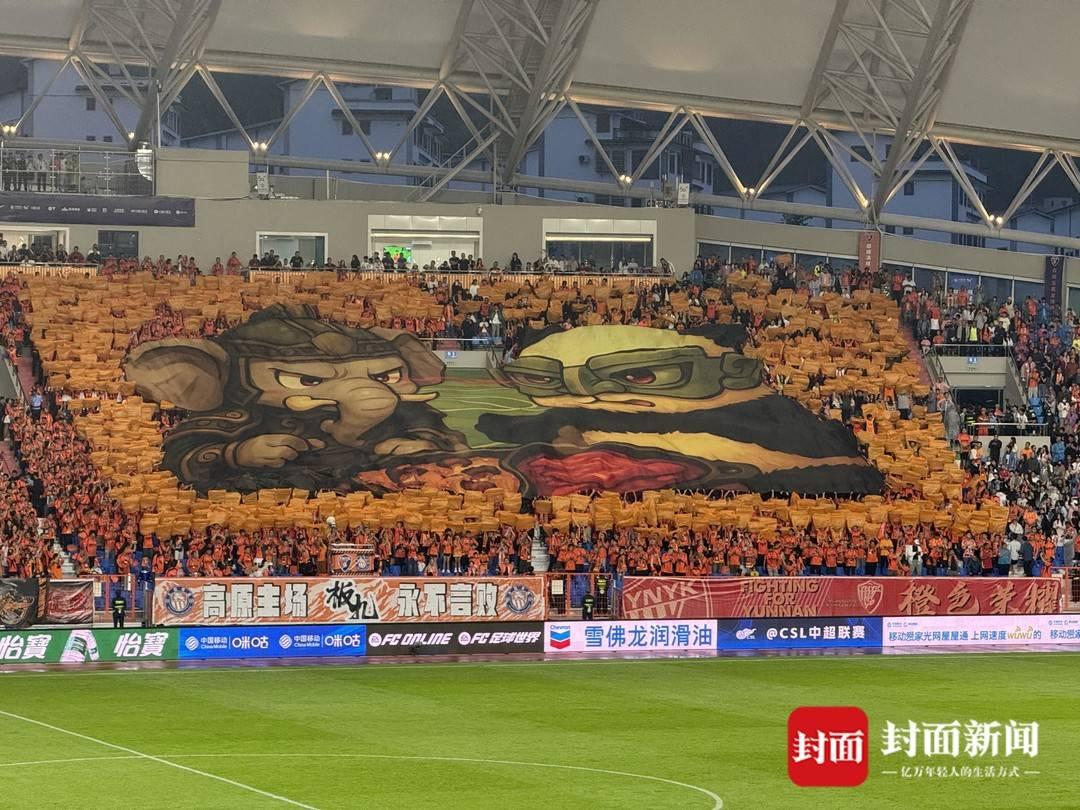 这场比赛,行为云贵川渝“折耳根定约”的代表,两边赛前憎恶融洽。云南球迷设席关怀理睬来自四川省球迷协会的远征军代表们,现场球迷还拉起Tifo,绘上一只大象和一只熊猫坐在全部烫暖锅,锅底是鸳鸯锅,一边是菌汤,一边是红锅。为了蓉城初度远征高原,约四千多名蓉城球迷自觉来到现场为球队捧场。
