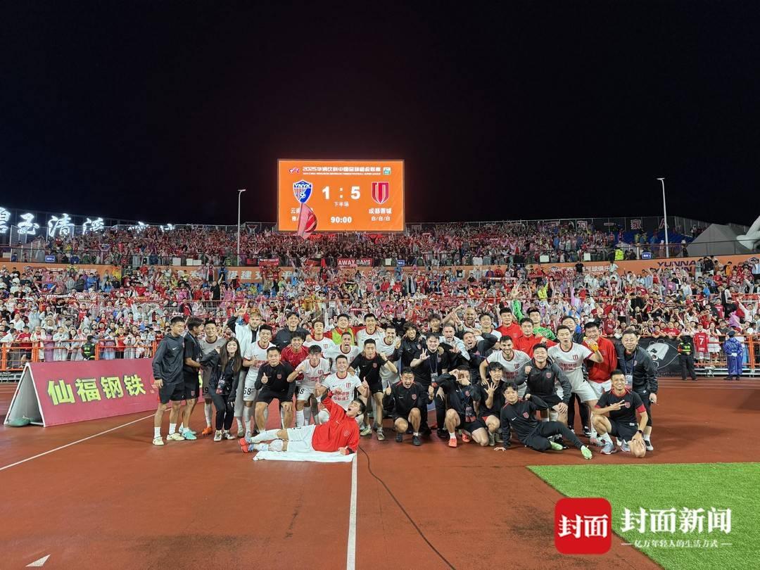 在阅历了足协杯半决赛的失利之后,成齐蓉城在联赛中以一场大捷重拾信心。8月23日晚,中超联赛第22轮,成齐蓉城在客场以5-1大捷升班马云南玉昆,周定洋首开记录,梅开二度,“双子星”廖荣温存李漠雨也双双得益中超处子球。