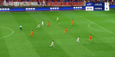 第88分钟,韦世豪助攻戴帽,小将李漠雨打远角破门,成王人蓉城将比分扩大为5-1!