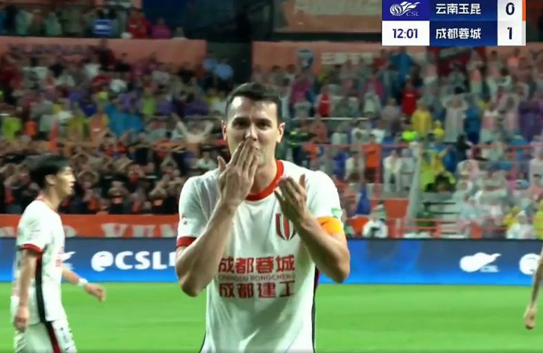 第34分钟,李松益后场发动长传首要,侯永永接球挑射,打进死角,这个进球太漂亮了!云南玉昆主场1-1扳平成王人蓉城。